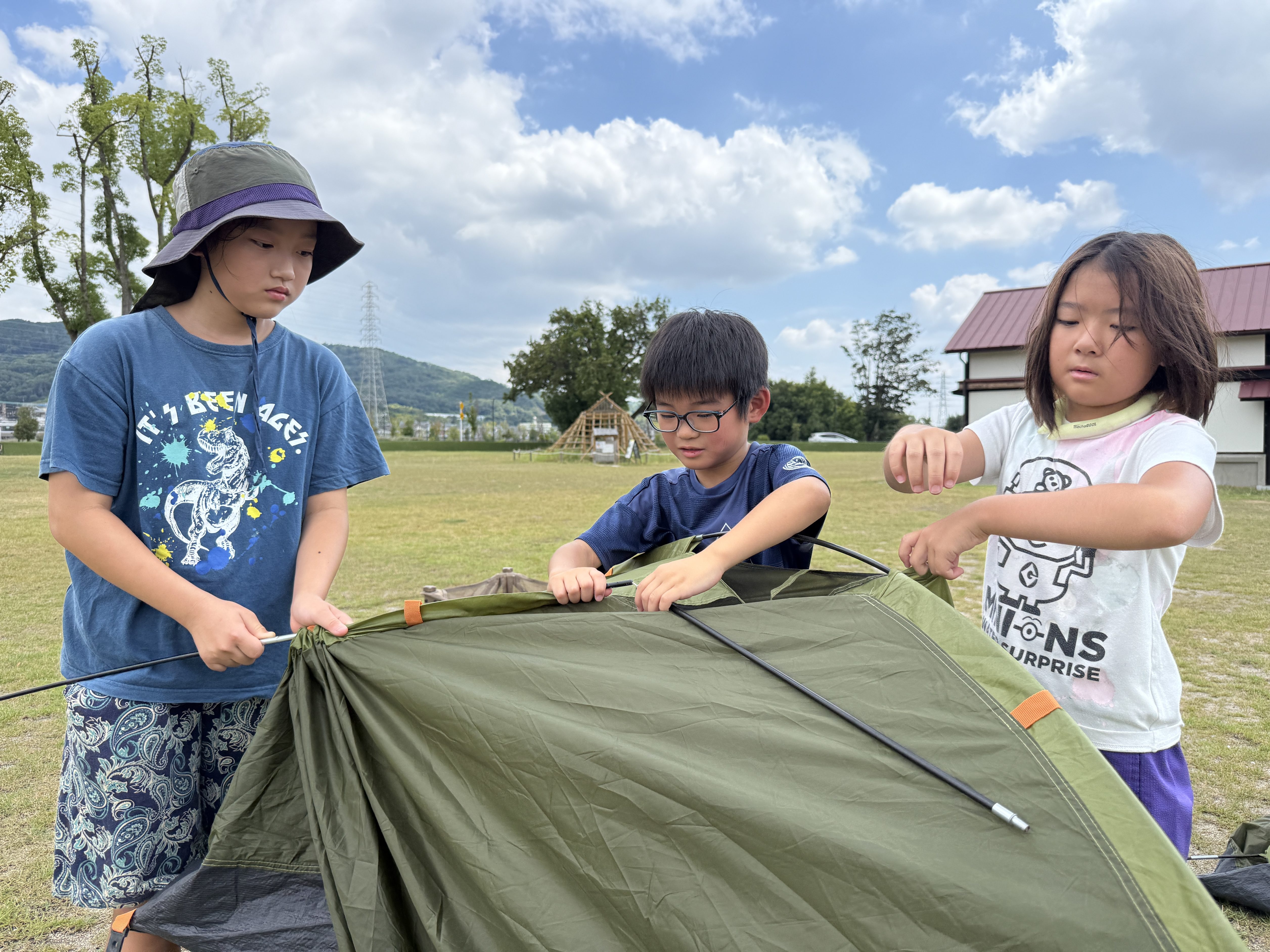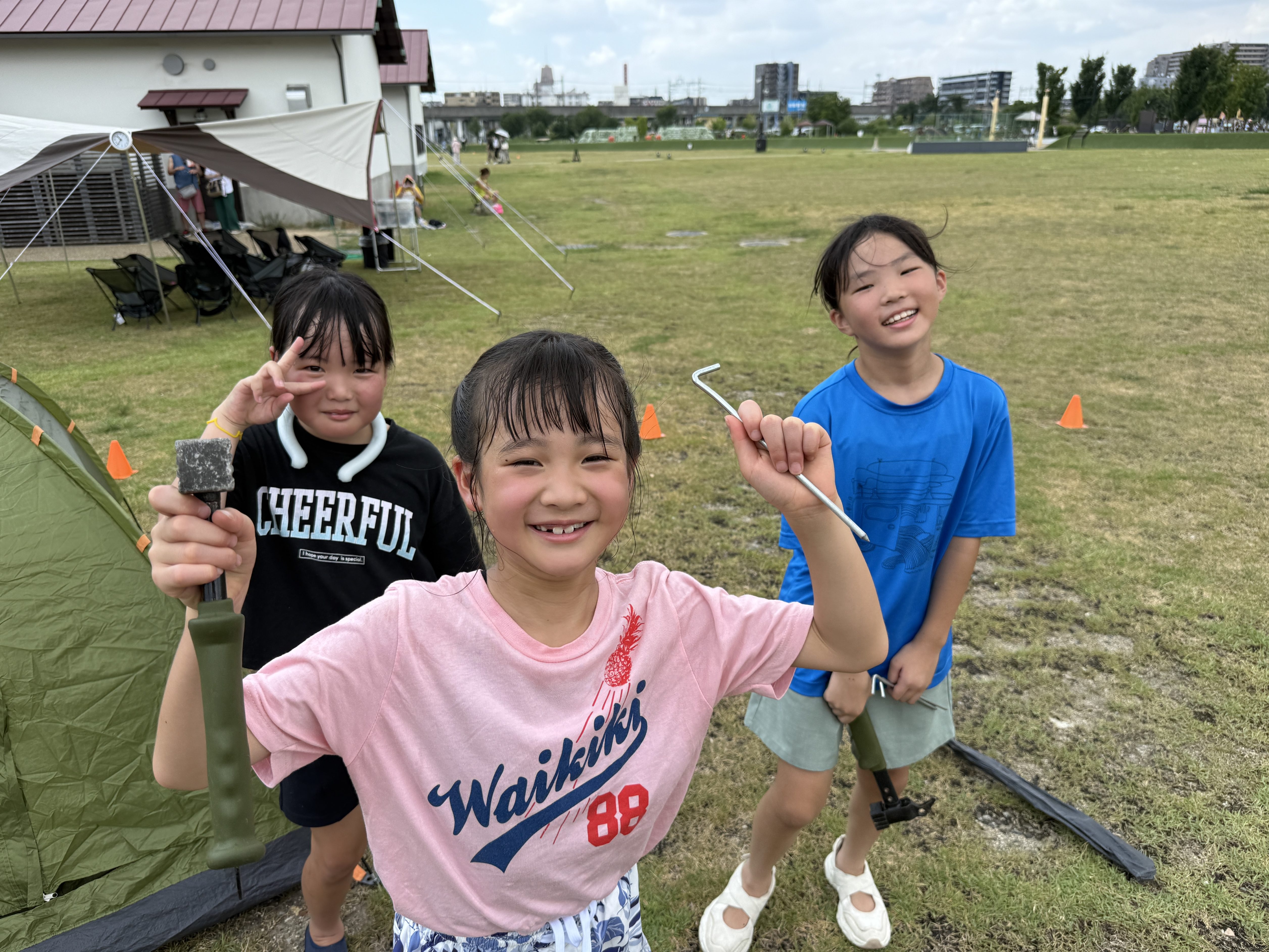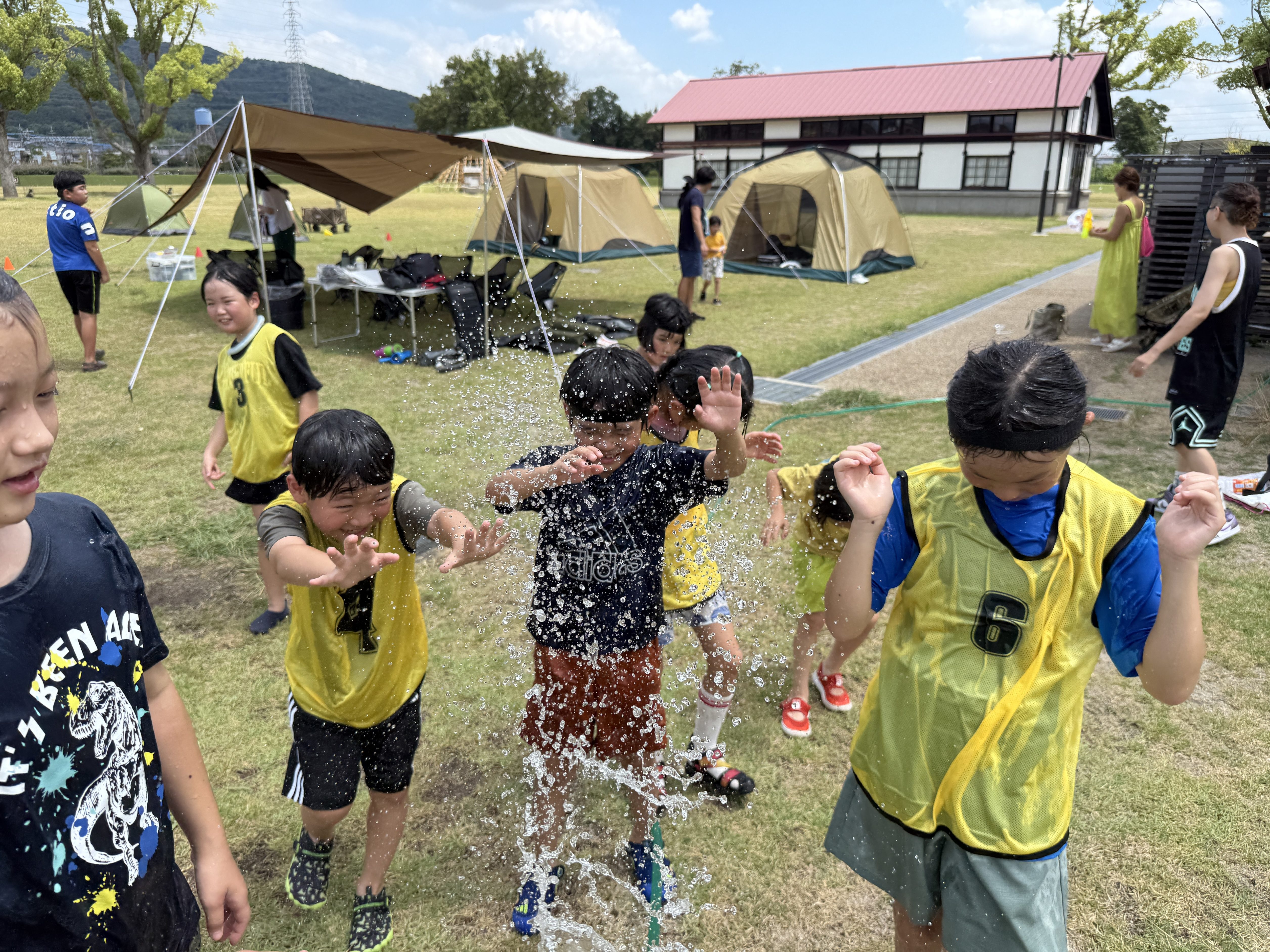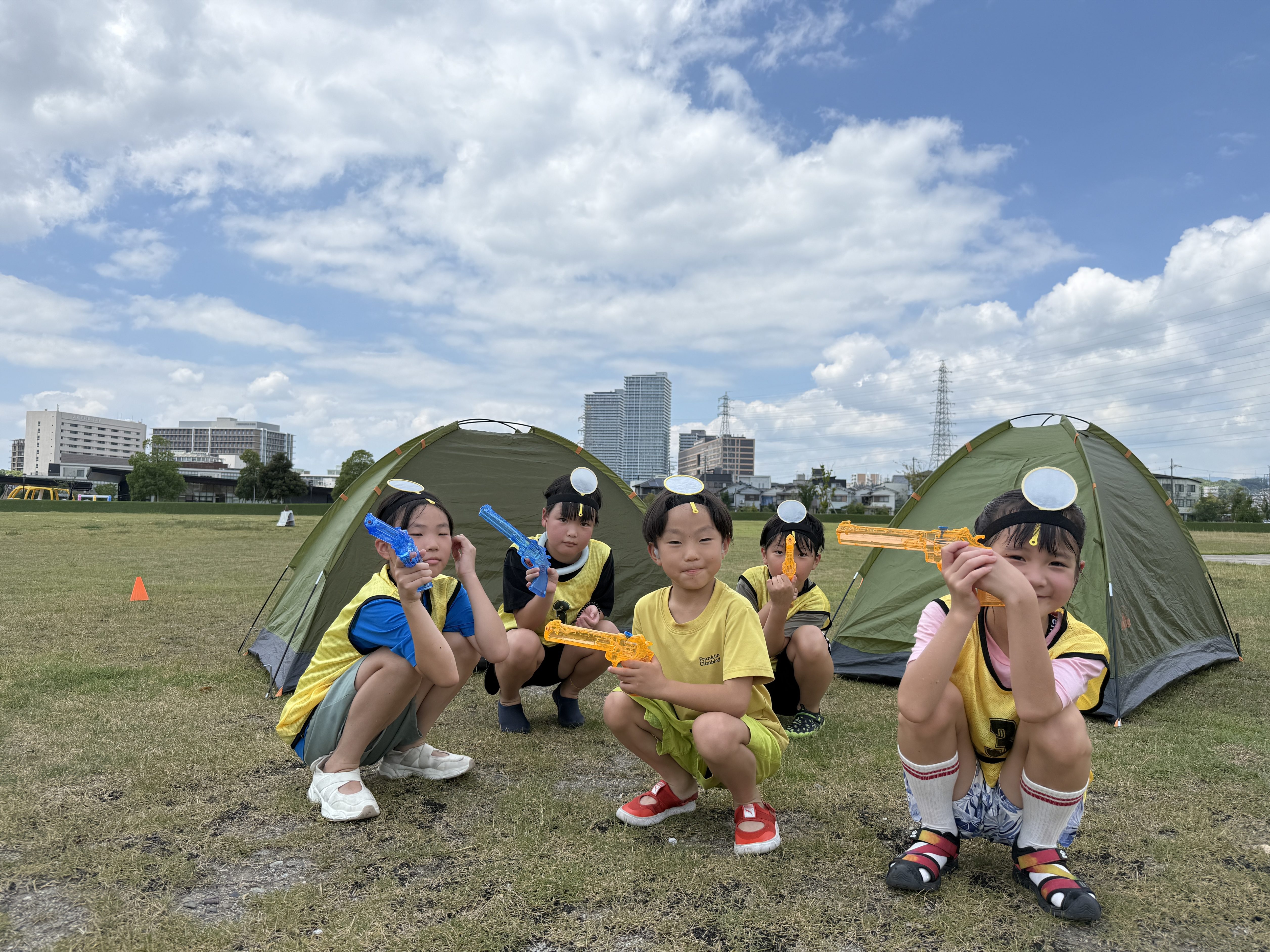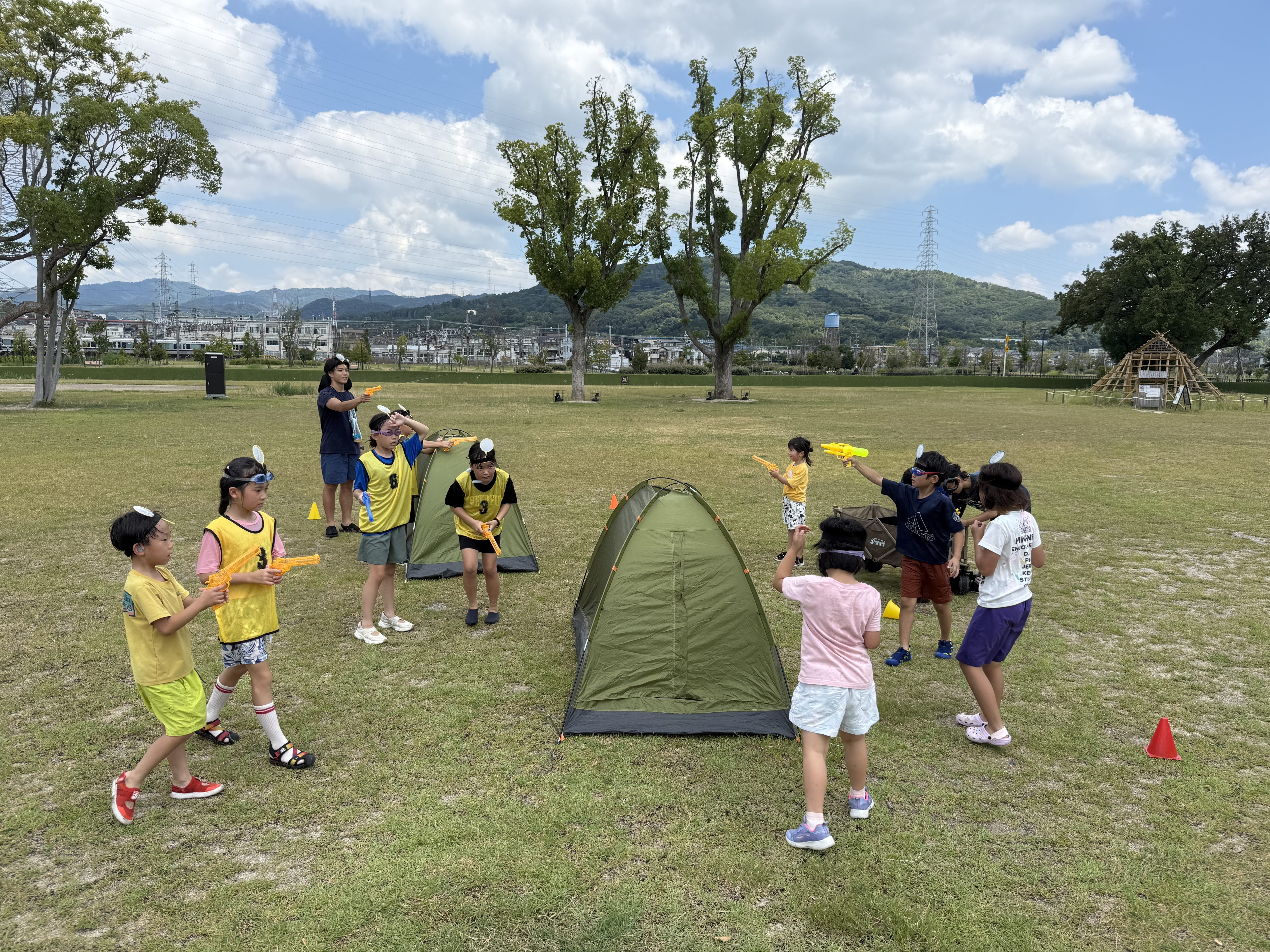 HOME > アカデミーについて > アカデミーについて ニュース 安満遺跡スクール 【高槻市|安満遺跡公園】防災キャンプスクール『できるキャンプアカデミー』日曜午前スクールの活動日誌(8月) 2025年8月7日 8月3日(日)に実施した安満スクールの日曜午前コースの活動の様子をご紹介します。今月のプログラムは、暑い夏だからこそ楽しめる「ウォーターサバゲー」です!水を使ったアクティビティで、みんな元気いっぱいに楽しんでいました。子どもたちが楽しそうに活動している様子を記事にまとめましたので、ぜひご覧ください。 テントが盾に!?「ウォーターサーバゲー」フィールド作り 最初のプログラムは、「ウォーターサバゲー」のフィールド作りとして、相手チームからの攻撃を防ぐ、盾となるテントを立てていきます!指導員が見守る中、チームで協力しながら設営を進めていきました!設営が終わったら次は、ウォーターサバゲーのルール説明です。今回はただ打ち合うだけじゃなく、王様が頭につけているポイを破ったチームが勝つというルールで行います。子供たちにはルールを理解してもらった上で、フィールド内にテントをどう配置するか、誰が王様をするかなど、作戦会議を行ってもらいました。「王様を守る人と攻める人の二手に分かれよう!」「偽物の王様を作ると相手も混乱するんじゃない?」「テントは横に並べてしっかり守れるようにしよ!」など、作戦を立てる様子は真剣そのものでした。 水鉄砲を撃ちまくれ!熱き戦い「ウォーターサバゲー」 フィールド作りと作戦会議が終わると、いよいよ子どもたちが楽しみにしていたウォーターサバゲーの開始です。水鉄砲を手に整列し、再度ルールの確認と「思いきり楽しもう!」という約束を交わし、元気よく挨拶をして、いざゲームスタート! 子どもたちは水に濡れるのも気にせず、笑顔ではしゃぎながら全力で走り回っていました。水しぶきを浴びながら敵チームを狙い撃ち、「よっしゃー!」と命中を喜ぶ姿や、「やばい〜!ポイが破れる〜!」と叫びながらテントに隠れて戦う様子がとても印象的でした。勝ったチームの子どもたちは、仲間と手を取り合って飛び跳ねながら大喜び!一方、負けたチームの子も「次は絶対勝つぞー!」と前向きな表情で意気込んでおり、勝敗に関係なく、みんなが思いきり楽しんでいました。全身びしょ濡れになりながらも、どの子の顔にも満面の笑みが広がり、仲間と声をかけ合いながら作戦を立てる姿も見られました。勝ち負けを越えて、みんなで本気で楽しんだウォーターサバゲーは、まさに「夏の思い出」。遊びの中でも自然とチームワークやコミュニケーションが育まれる、印象的な時間となりました。 休憩中の一コマ 休憩中には、先生にホースで水をかけてもらい、ウォーターサバゲー以上にびしょ濡れになった子どもたち!とっても気持ちよさそうで、見ているこちらもほっこりするようなひとときでした!笑 最後は1日の振り返り 活動の後は、みんなで協力してお片付け!先生達が声をかけなくても進んで片付けをしてくれる子ども達がたくさん!みんなの協力する姿が素敵でした!そして締めくくりには、今日一日を通して感じたことや学んだことについて、みんなで振り返りを行いました。「ウォーターサーバーに挑戦できた」「チームで協力して作戦を立てて勝つことができた」「テント設営の時に手伝ってもらって"ありがとう"が言えた」など、一人ひとりから前向きな言葉がたくさん出てきました。今回のスクールでも、挑戦する姿、仲間と協力する姿、感謝の気持ちを言葉にする姿など、子どもたちの成長を随所に感じることができました。次回のスクールでも、みんなと一緒に新しい体験ができるのを楽しみにしています! スクール生、随時募集中! できるキャンプアカデミーでは各会場でスクール生の募集を行っています。普段のスクールに無料で体験参加できますので、気になる方は下記よりお申し込みください! 体験会参加のお申し込みはコチラ 【安満遺跡スクール:日曜午前コース】過去の活動日誌はこちらから♪ 【高槻市|安満遺跡公園】防災キャンプスクール『できるキャンプアカデミー』(日曜午前コース)の活動日誌(7月)7月6日(日)に大阪府高槻市の安満遺跡公園にて実施した、安満遺跡スクール(日曜日午前の部)の活動の様子をご紹介します。今回のプログラムは「挑戦・協力・感謝」をテーマに、薪割りやロープワーク、チームでの ... 【高槻市|安満遺跡公園】防災キャンプスクール『できるキャンプアカデミー』(日曜午前コース)の活動日誌(6月)6月1日(日)に大阪府高槻市の安満遺跡公園にて実施した、安満遺跡スクール(日曜日午前の部)の活動の様子をご紹介します。 「できるキャンプアカデミー」では、ただキャンプを楽しむだけでなく、子どもたちが自 ... 他スクールでの過去の活動や、イベント記事はこちらから♪ 【高槻市|安満遺跡公園】宿泊キャンプイベント「デキルキャンパークin安満