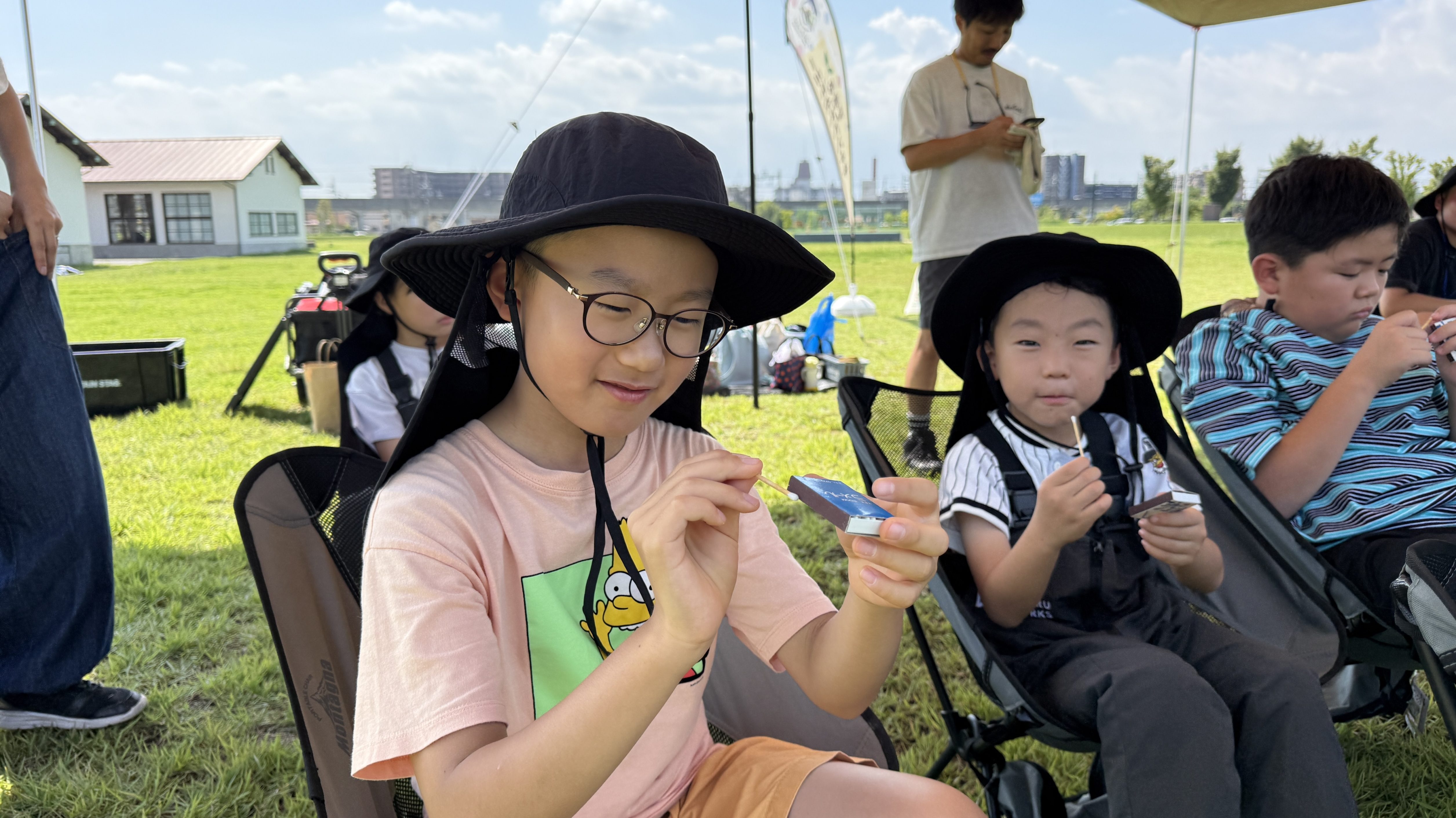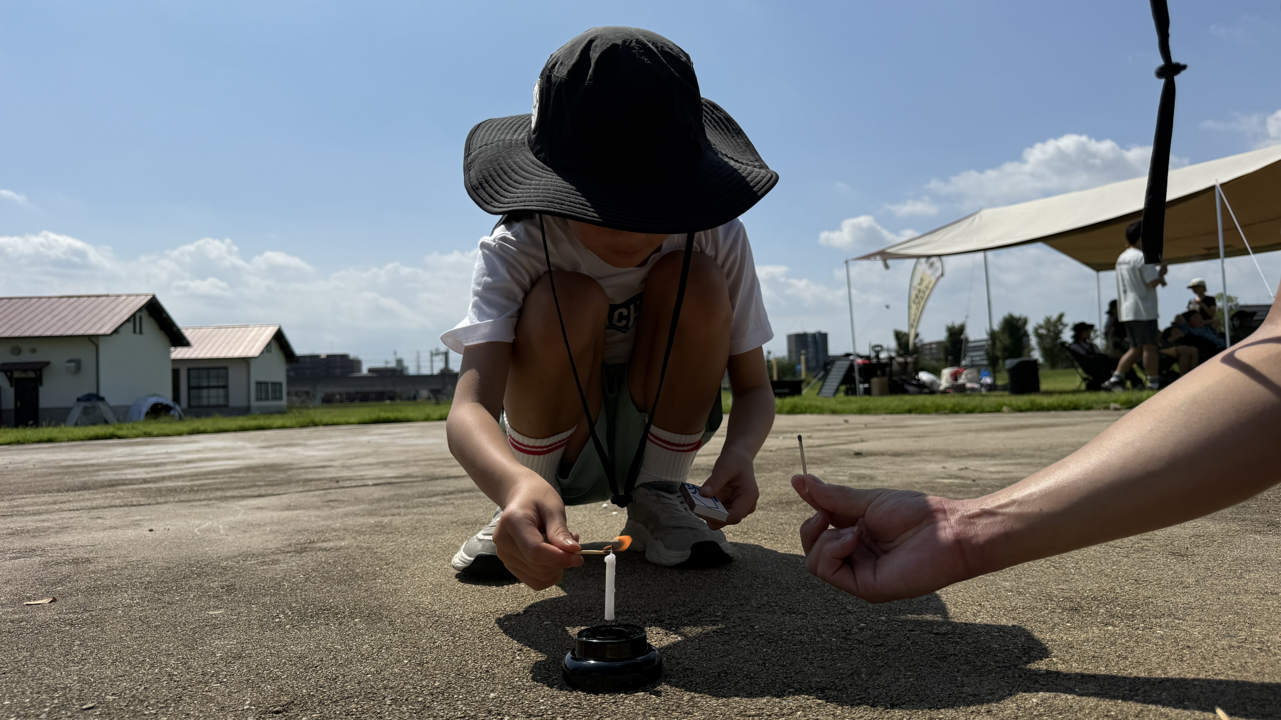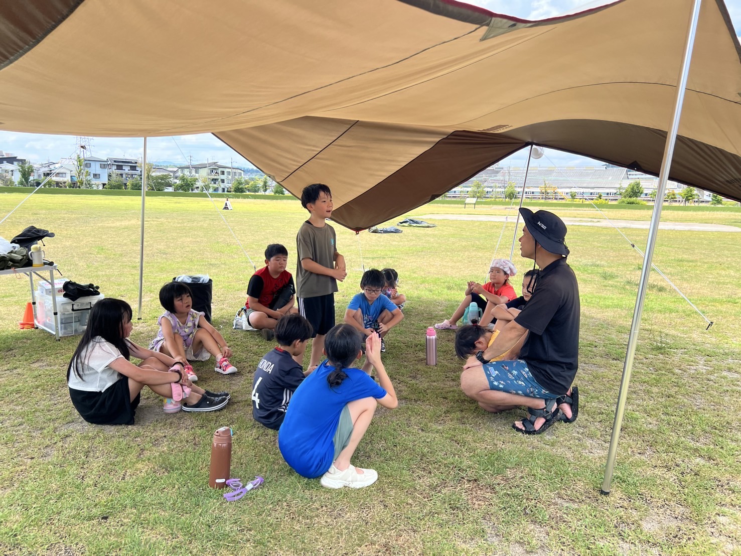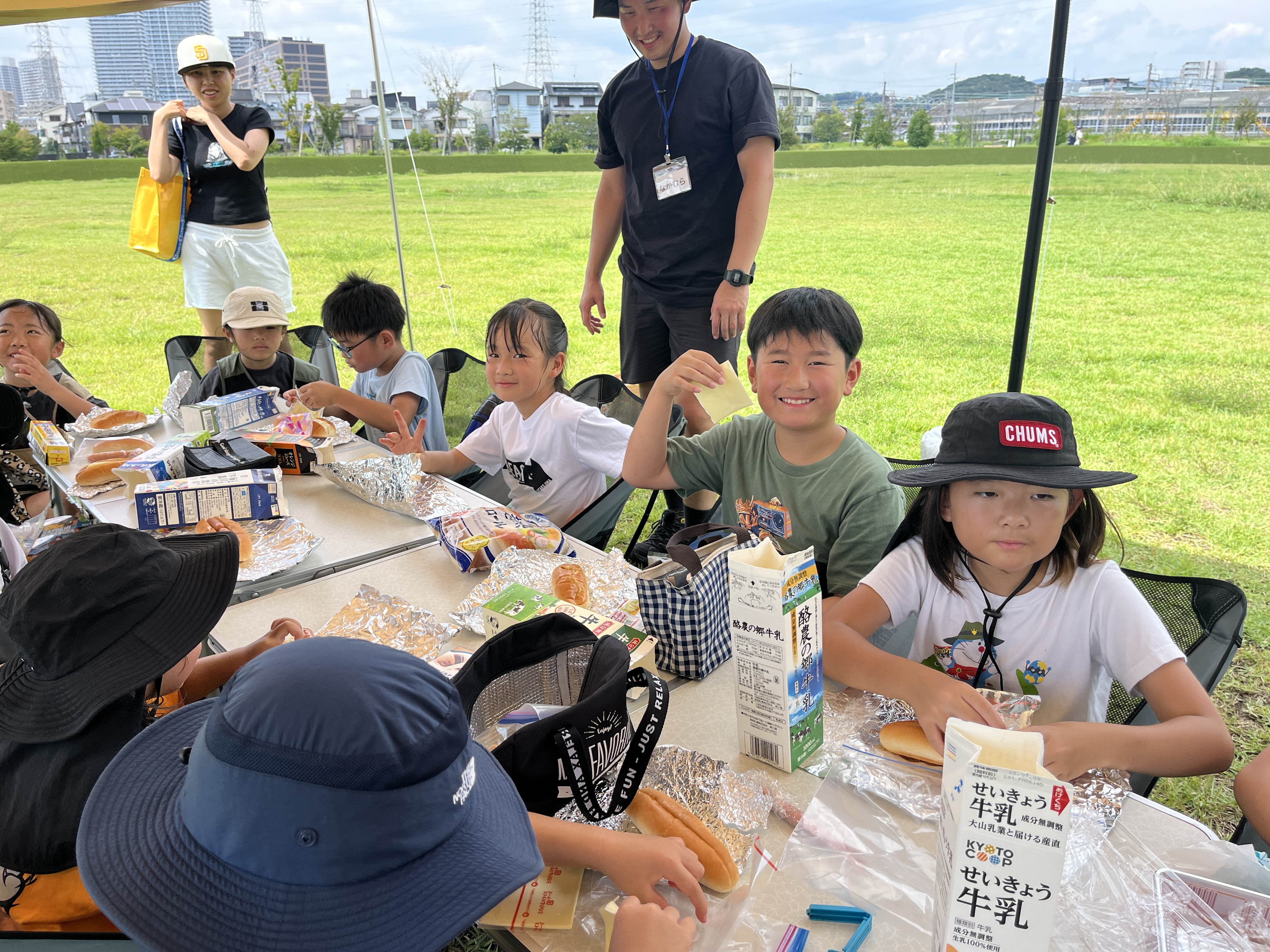 HOME > アカデミーについて > アカデミーについて ニュース 安満遺跡スクール 【高槻市|安満遺跡公園】防災キャンプスクール『できるキャンプアカデミー』日曜午前スクールの活動日誌(9月) 2025年9月16日 9月7日(日)、大阪府高槻市の安満遺跡公園にて安満遺跡スクールを開催しました。子どもたちは一日を通して元気いっぱいに活動し、「挑戦・協力・感謝」の3つのお約束を意識しながら、自然の中での体験を楽しんでいました。その様子を皆さまにご紹介します。 マッチを使って火起こしチャレンジ まずは、マッチを使って火を起こす体験に挑戦しました。先生から火の性質や安全な扱い方、便利さや怖さについて説明を受けた後、実際にマッチを使ってローソクに火を灯す練習を行いました。子どもたちは「つくかな…」と少し緊張しながらもマッチを擦り、火がついた瞬間に「ついた!」「思ってたよりあったかい!」と笑顔で声をあげていました。火の熱や光、そして煙のにおいを五感で体験し、火が生活に欠かせない一方で危険も伴うことをしっかり理解していました。この体験を通して、火の安全な扱いを学び、自分で火をつける達成感や自信を得ることができました。子どもたちにとって「火のありがたさ」を実感する貴重な機会になったようです。 チームで協力!焚き火台と机の組み立て 続いて、カートンドッグ作りに使う焚き火台と机の組み立てを行いました。見本や説明書はなく、部品や仕組みを考えながら仲間と協力して作業を進めます。机はシンプルな構造ですが、しっかりロックをかけないと使用中に倒れてしまうため、安全に気を配りながら取り組みました。「どこにこの部品をつけるんだろう?」「ロックがちゃんとしまってるか確認しよう!」と声を掛け合いながら、子どもたちは試行錯誤。友達と相談し、力を合わせて焚き火台と机を完成させる姿はとても頼もしく見えました。今回の体験を通して、仲間と協力する大切さや、安全を意識しながら行動する力を学びました。ただ作業を終わらせるのではなく「安全に仕上げる」という意識を持ちながら、みんなで完成させる喜びを味わうことができました。 自由にトッピング!カートンドッグ作り いよいよお待ちかねのカートンドッグ作りです。牛乳パックを使った調理に挑戦し、子どもたちは持ち寄った材料(野菜、チーズ、唐揚げなど)を自由にトッピング。アルミホイルで包み、牛乳パックに入れて焚き火台で加熱します。「チーズがとろけてきた!」「いい匂いがする!」とわくわくした声が飛び交い、焼き上がったカートンドッグをほおばると「おいしい!」と笑顔が広がりました。 熱でチーズが溶けたりパンがこんがり焼けたりする変化も楽しみ、自分で作ったものを食べることで大きな達成感を味わう姿が印象的でした。この体験を通して、子どもたちは食の楽しさだけでなく「自分の手で作る大切さ」を学ぶことができました。調理の工程を仲間と一緒に進めることで、協力の喜びも感じられたようです。 最後は1日の振り返り 一日の最後には、今日の活動を振り返りました。「初めてマッチで怖かったけど頑張って火をつけられた!」「カートンドッグのトッピングを交換した時にありがとうが言えた」「チームの友達と協力して重たい焚き火台を移動させた」など、挑戦する姿、仲間と協力する姿、感謝を伝える姿がたくさん見られました。活動を通して、子どもたちは自然体験の中で「挑戦・協力・感謝」を実感。自分の力で挑戦すること、仲間と協力すること、感謝を言葉で伝えることの大切さを体で感じ取ったようです。今回の安満遺跡スクールは、笑顔あふれる一日となりました。スタッフ一同、子どもたちの成長を間近で感じられたことをとても嬉しく思います。次回のスクールでも、元気いっぱいのみんなに会えるのを楽しみにしています。 スクール生、随時募集中! できるキャンプアカデミーでは各会場でスクール生の募集を行っています。普段のスクールに無料で体験参加できますので、気になる方は下記よりお申し込みください! 体験会参加のお申し込みはコチラ 【安満遺跡スクール:日曜午前コース】過去の活動日誌はこちらから♪ 【高槻市|安満遺跡公園】防災キャンプスクール『できるキャンプアカデミー』日曜午前スクールの活動日誌(8月)8月3日(日)に実施した安満スクールの日曜午前コースの活動の様子をご紹介します。今月のプログラムは、暑い夏だからこそ楽しめる「ウォーターサバゲー」です!水を使ったアクティビティで、みんな元気いっぱいに ... 【高槻市|安満遺跡公園】防災キャンプスクール『できるキャンプアカデミー』(日曜午前コース)の活動日誌(7月)7月6日(日)に大阪府高槻市の安満遺跡公園にて実施した、安満遺跡スクール(日曜日午前の部)の活動の様子をご紹介します。 今回のプログラムは「挑戦・協力・感謝」をテーマに、薪割りやロープワーク、チームで ... 【高槻市|安満遺跡公園】防災キャン