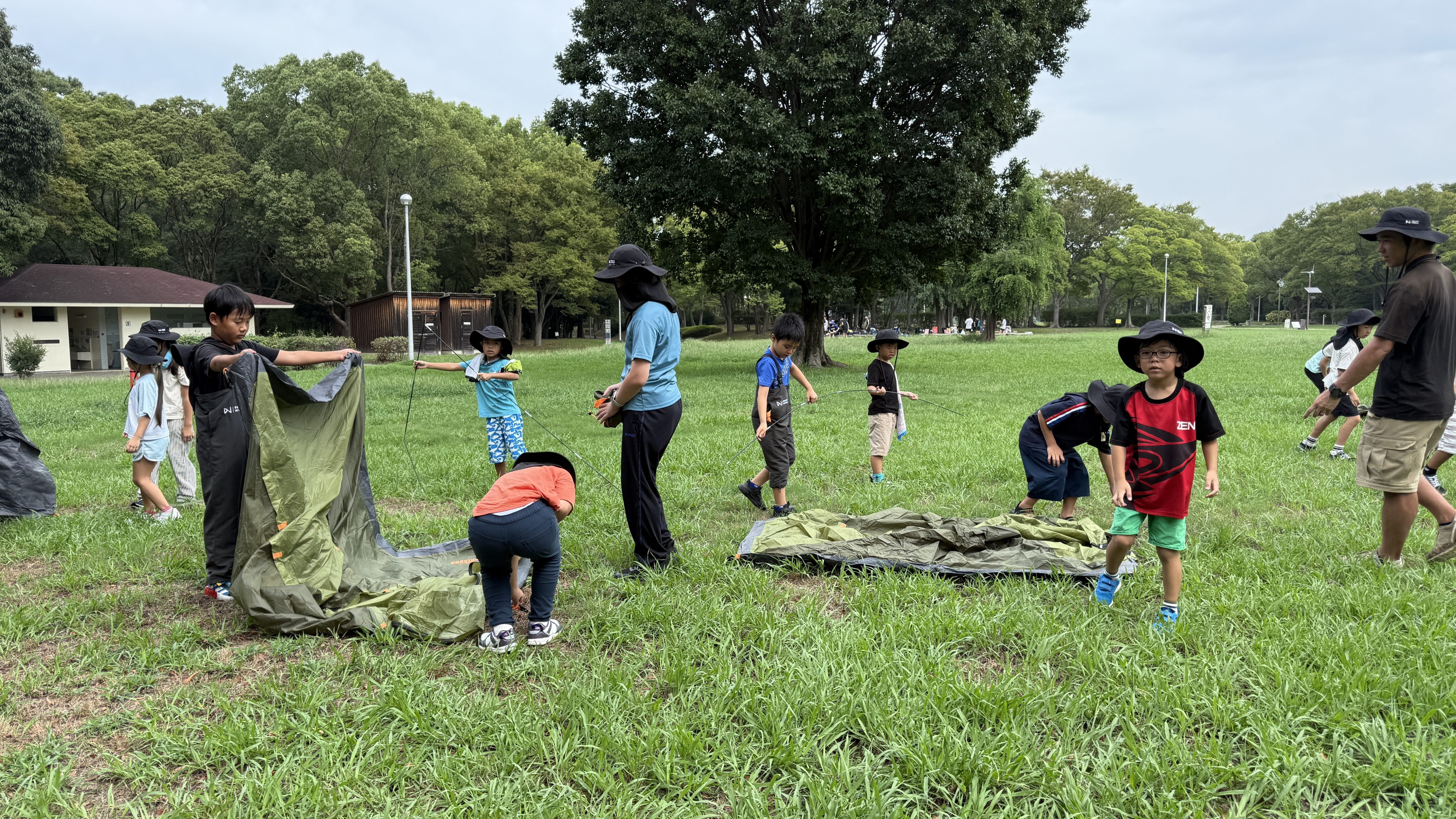 最初のプログラムは、昇級試験(8級)の課題でもあるテント設営でした。