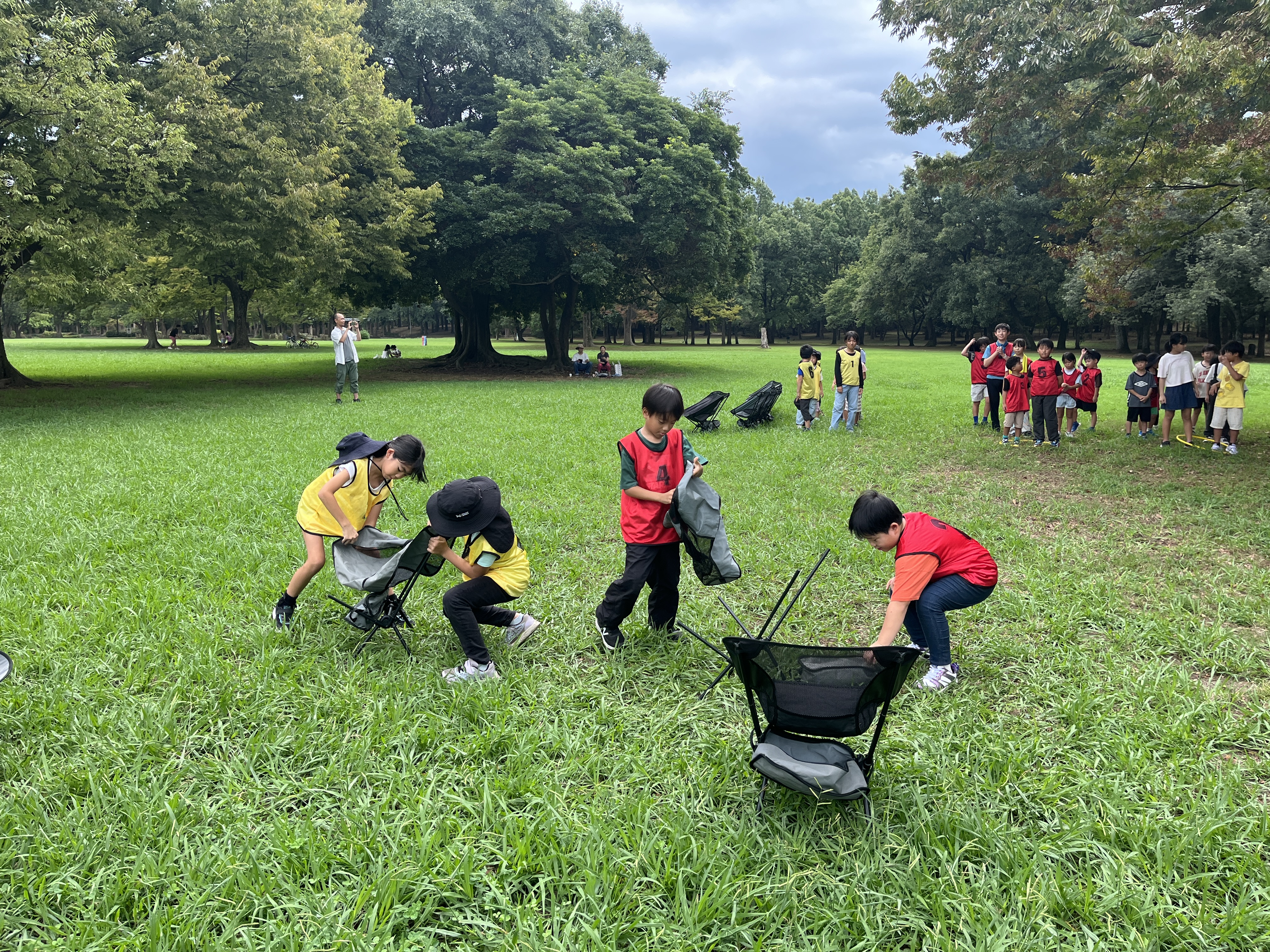 続いての「チェア組み立てリレー」では、役割を決めて挑戦を行いました。真剣な表情で組み立てに取り組む子、サポートする子、一生懸命走ってバトンをつなぐ子、仲間を応援する子など、それぞれが力を発揮しました。結果に一喜一憂しながらも、協力してやり遂げる達成感を味わいました。
