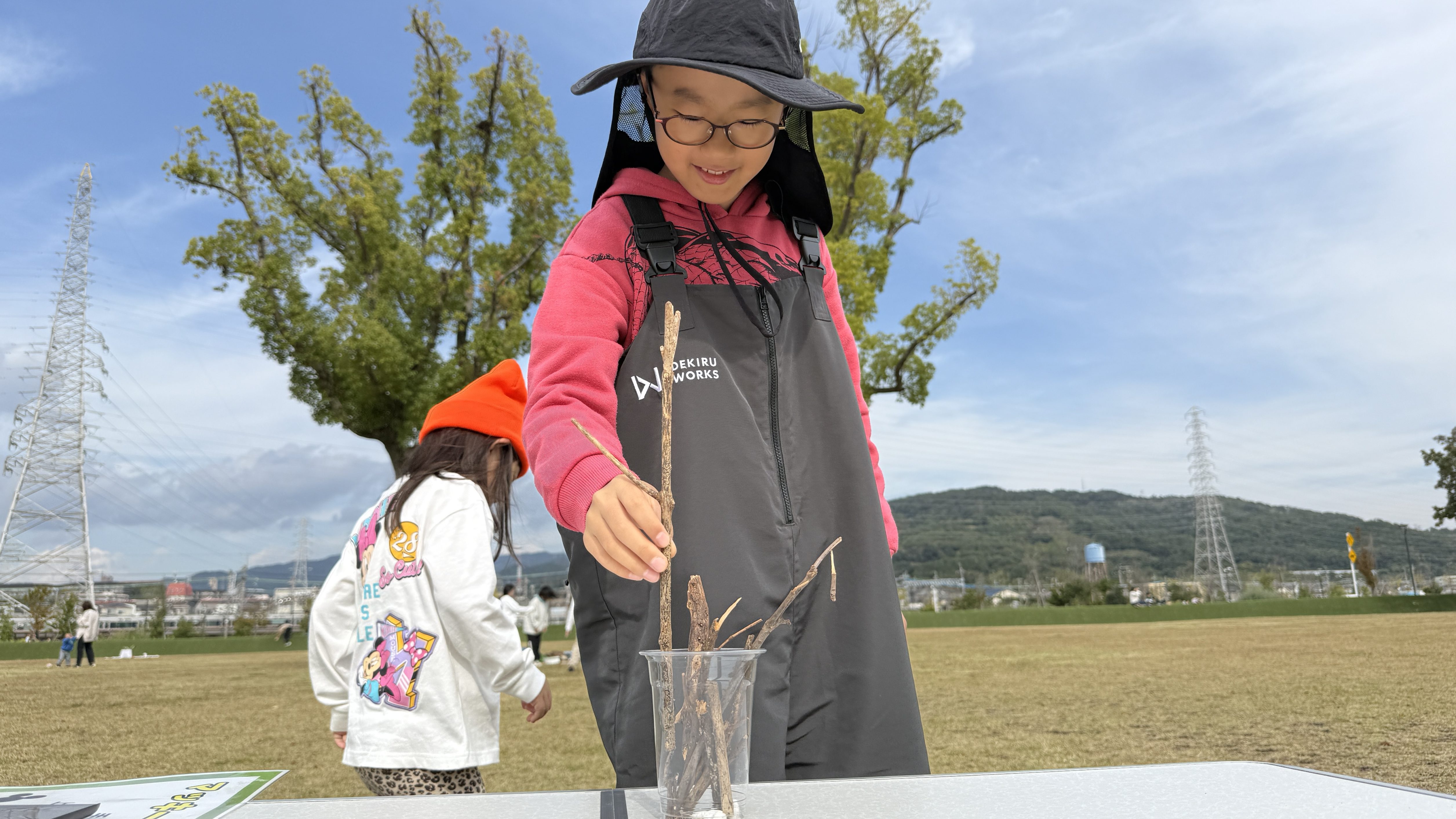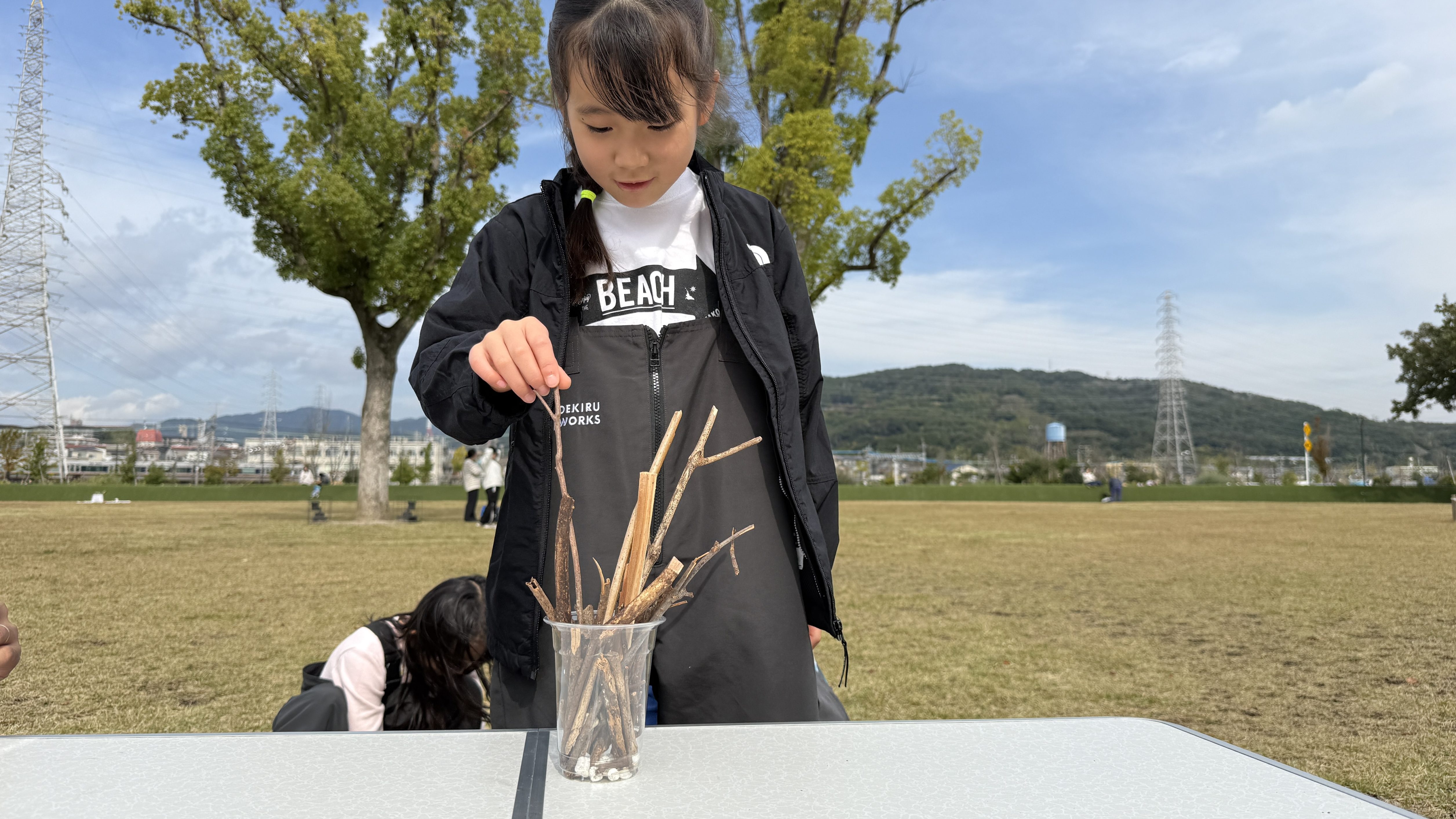 続いては、公園に落ちている枝とコップを使った『枝ジェンガ』です。