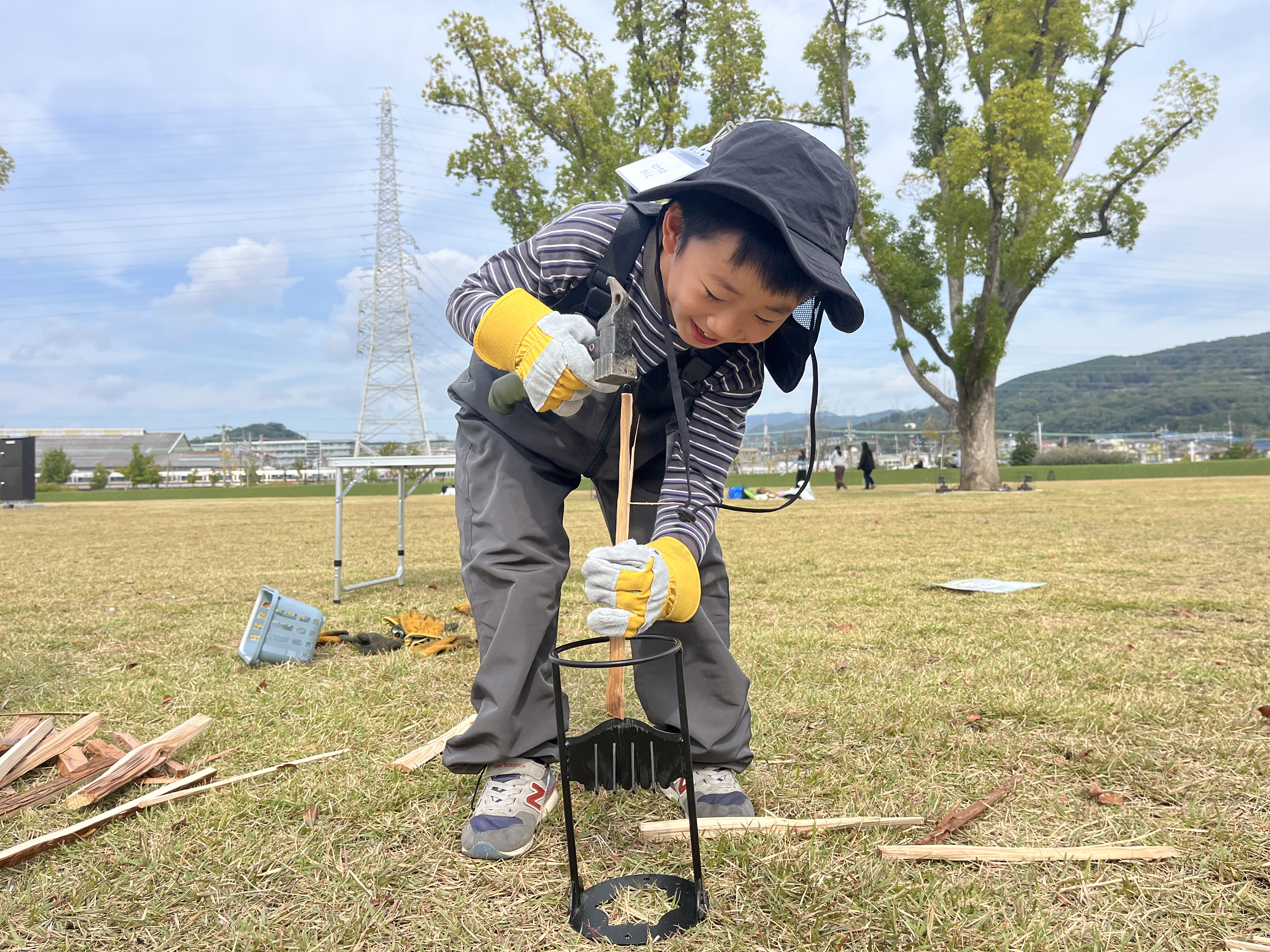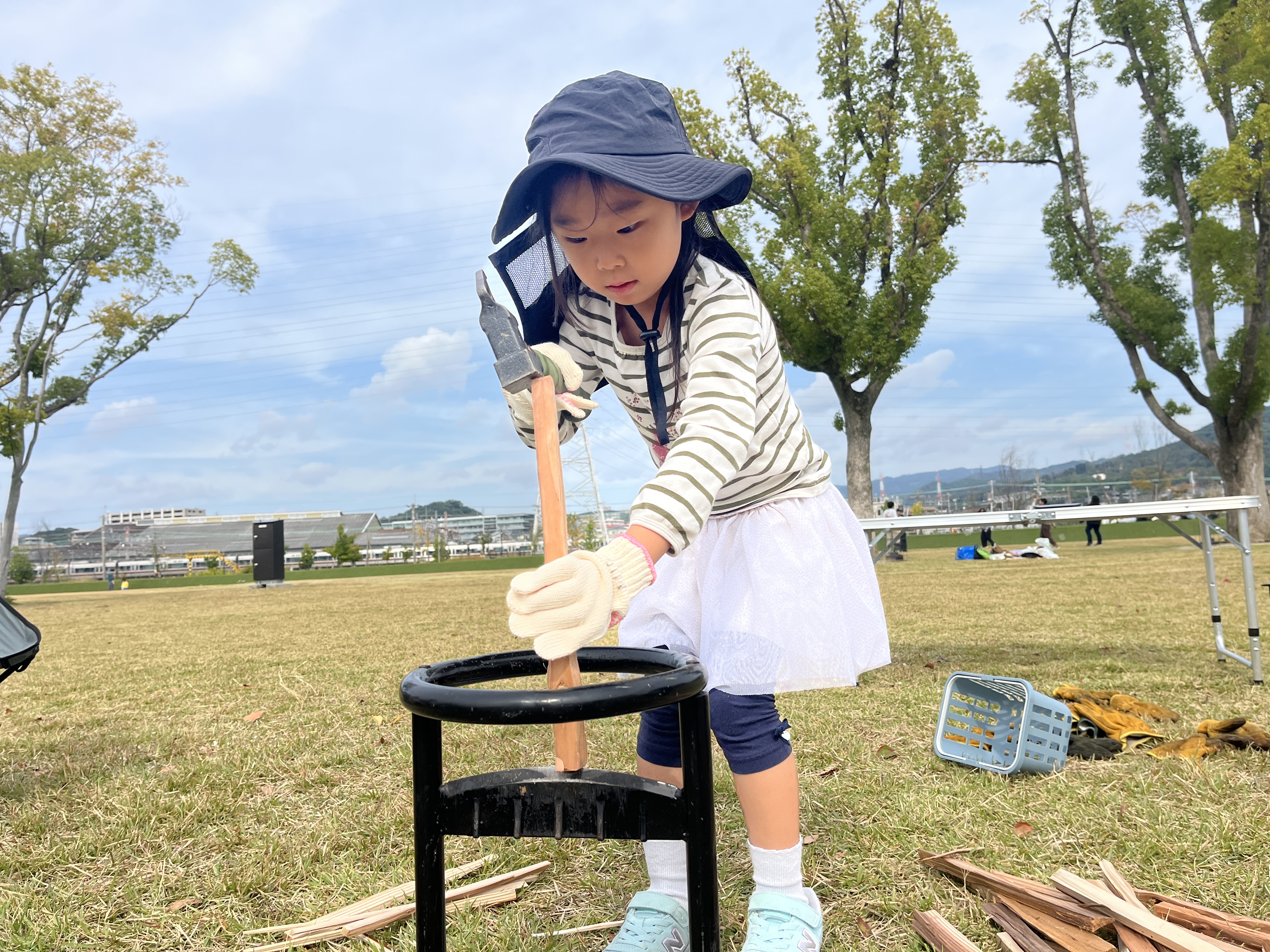 子どもたちは「たくさん割って細くしていこう!」「割り箸みたいな薪ができた!」と声を弾ませながら挑戦しました。友達がうまく割ると「ほっそー!!」と拍手が起こるなど、チーム全体が一体となって盛り上がりました。