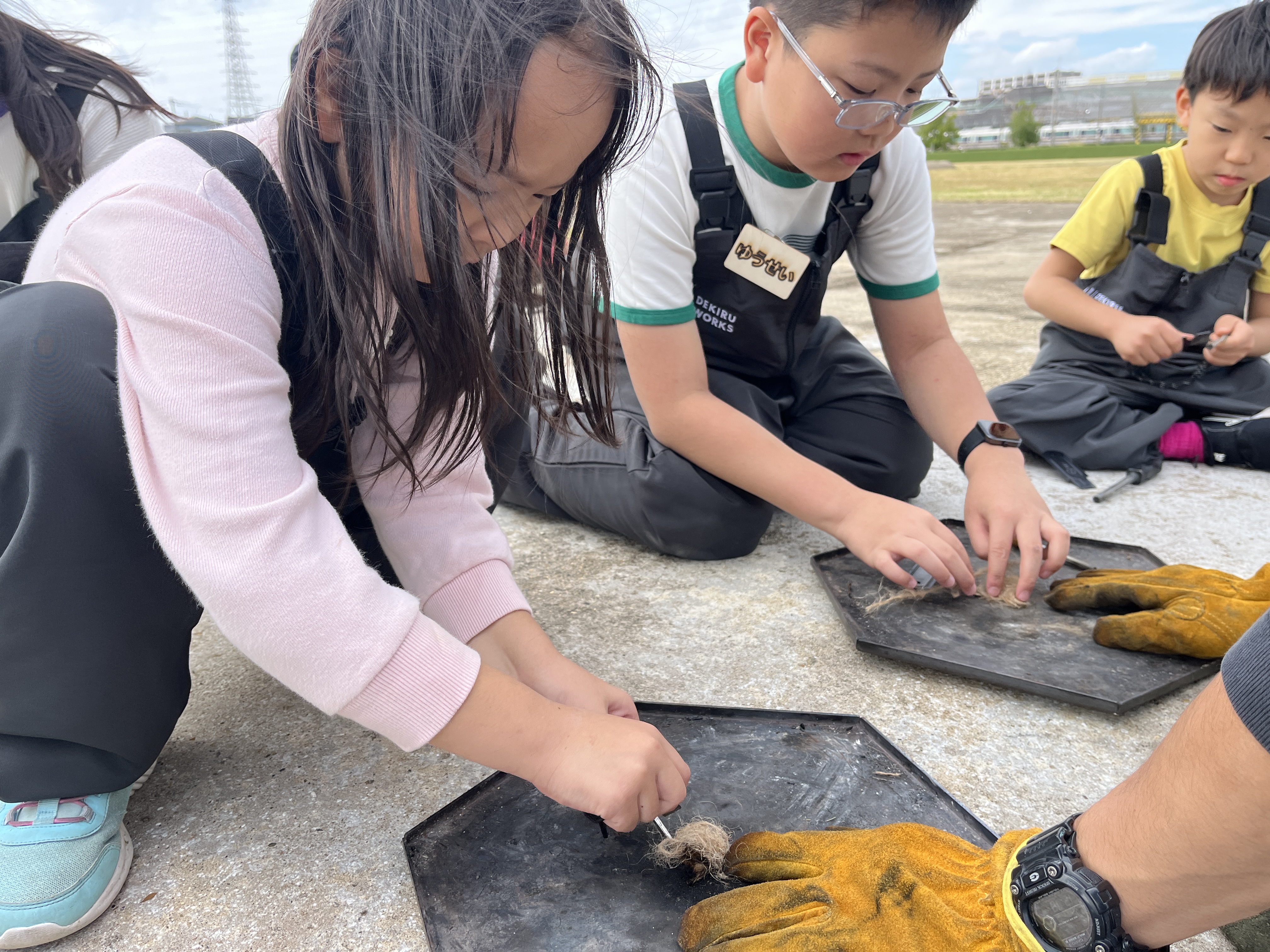 すでに、ファイヤースターターを使った着火ができる子たちは、さまざまな種類のファイヤースターターを用いて、火を起こしました。